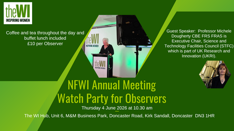 The WI Hub, Unit 6, M & M Business Park, Doncaster Road, Kirk Sandall, Doncaster DN3 1HR Email: southyorksfed@gmail.com Tel: 01302 579027